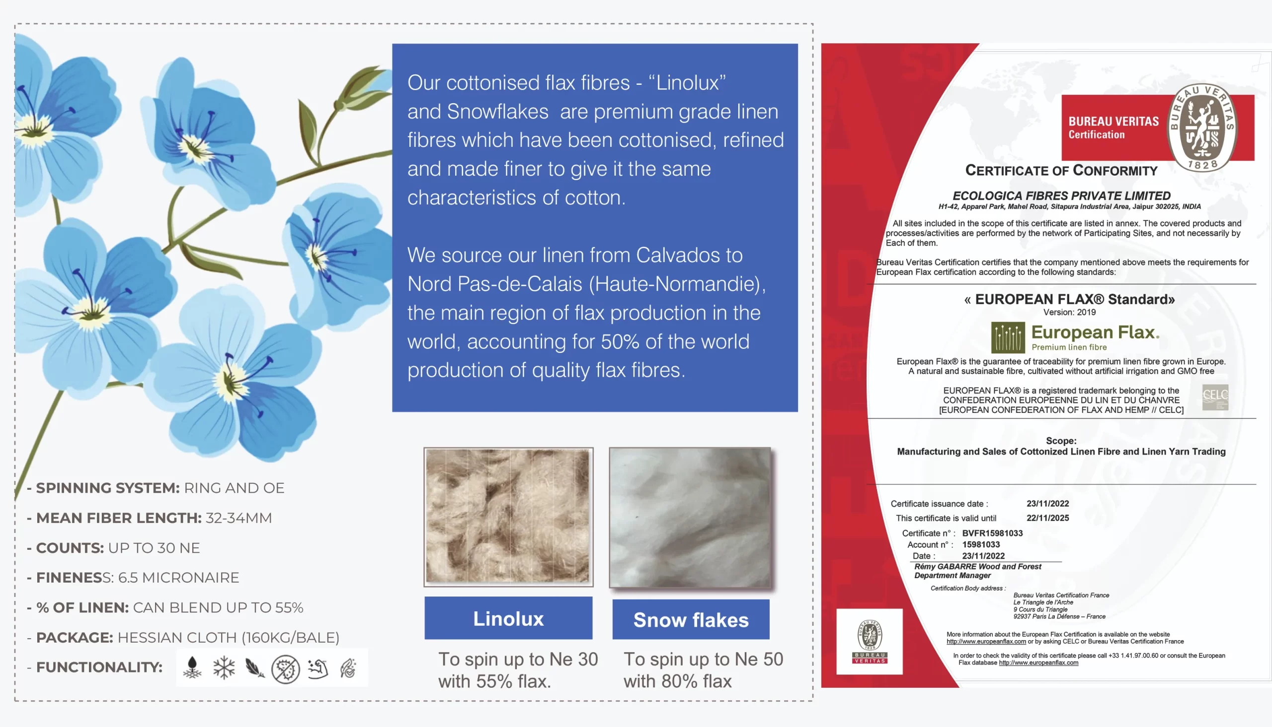 We are go-to supplier for bast fibres including linen and hemp which are natural and biodegradable and offer traceable solutions to buyers – spinners, weavers and brands.